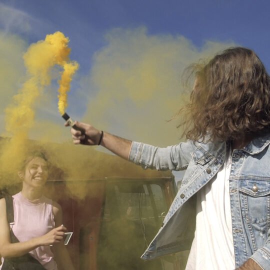 Playing with a yellow smoke bomb
